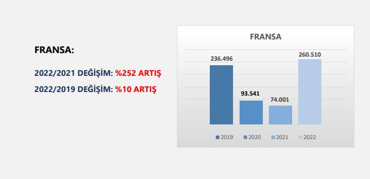 2022 yılına ziyaretçi sayısı açısından yükselişle giren Türkiye, Ocak-Mayıs aylarını kapsayan ilk beş aylık dönemde en çok ziyaretçiyi Almanya’dan almış olup Almanya’yı; Bulgaristan, Rusya, İran, İngiltere, Gürcistan, Hollanda, Irak, Azerbaycan ve Fransa listede takip eden ülkeler olmuştur.