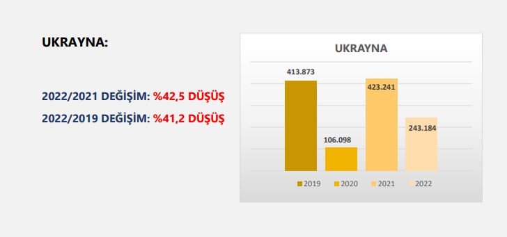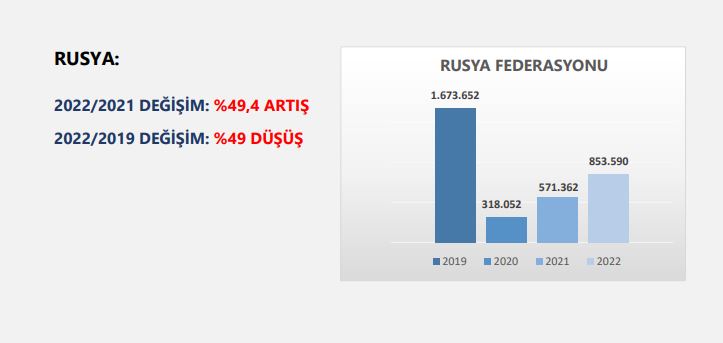 Kültür ve Turizm Bakanlığı tarafından açıklanan Sınır Giriş istatistiklerine göre, 2022 yılının Ocak-Mayıs döneminde ülkemize gelen yabancı ziyaretçi sayısı, 2021 yılına oranla yüzde 207,1 oranında artış ile 11 milyon 301 bin 602 kişiye ulaştı. Ancak, 2022 yılının Ocak-Mayıs ayları arsında gelen yabancı ziyaretçi sayısının pandemi öncesi dönem olan 2019 yılının 5 aylık diliminin %11,4 gerisinde olduğu görülmektedir. Üç aylık dönemler halinde açıklanan yurt dışında yaşayan vatandaş ziyaretçi sayısı Mayıs ayı itibariyle açıklanmamış olmakla birlikte Ocak-Mart 2022 döneminde gelen vatandaş ziyaretçi sayısı eklendiğinde toplam ziyaretçi sayısı beş aylık dönemde toplam 12.7 milyonu geçmiştir. 2022 yılının ilk beş aylık döneminde Ukrayna pazarı hariç tüm pazarlarda çift, üç, hatta dört haneli büyüme söz konusudur. Rusya ve Ukrayna arasında yaşanan savaş nedeniyle Ukrayna pazarında geçen yılın aynı dönemine göre yüzde 42,54 oranındaki bir gerileme söz konusudur. Tüm pazarlarda ciddi bir toparlanma yaşanırken ana pazarlarımızdan Almanya’da yüzde 367, İngiltere’de ise yüzde 1968,4 gibi ciddi bir büyüme gerçekleşmiştir.
