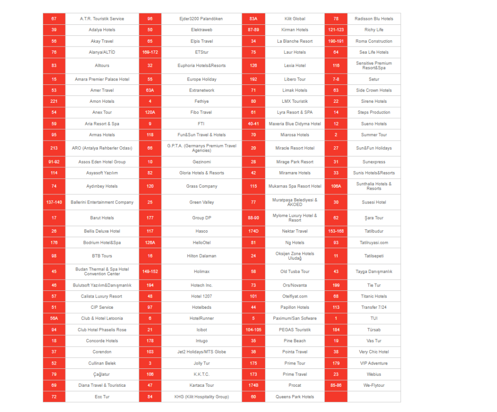 En çok Türkiye otelini, Türkiye ile birlikte tüm dünya pazarlarına misafir üreten seyahat acentelerini ve Türkiye kaynak pazarlarının en etkin tur operatörlerini ve turizm sektörüne hizmet, bilgi, kabiliyet üreten firmalarını bir arada bulabileceksiniz.