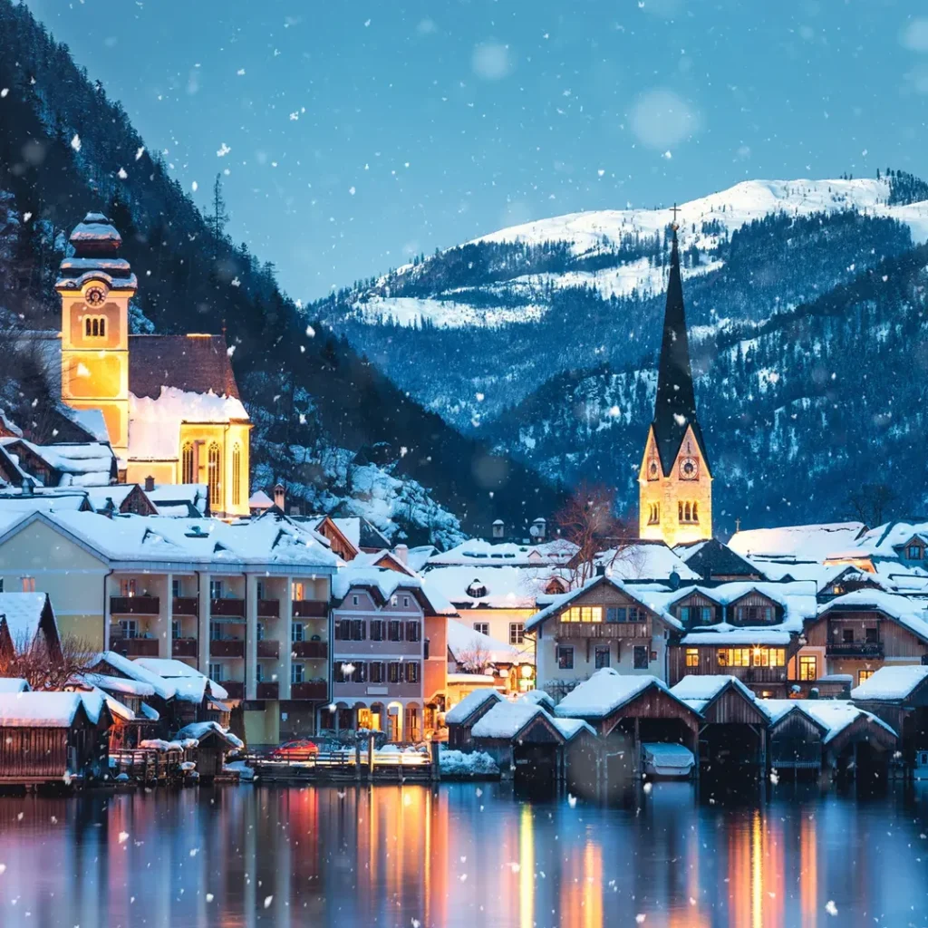 Avusturya’nın UNESCO Dünya Mirası listesindeki bu küçük kasabası, kış mevsiminde adeta bir kartpostal görünümü alır. Donmuş göl manzaraları, karlı dağlarla birleşerek eşsiz bir atmosfer sunar. Tarihi evleri ve dar sokaklarıyla Hallstatt, doğanın ve kültürün bir arada olduğu unutulmaz bir deneyim sunuyor.