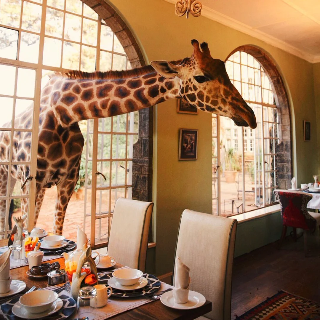Nairobi’de bulunan Giraffe Manor, misafirlerine eşsiz bir deneyim sunuyor. Otelin sakinleri olan Rothschild zürafaları, sabah kahvaltınızı paylaşmak için pencerelerinizden kafalarını uzatabilir. Bu otel, doğa ve lüksün mükemmel bir birleşimini sunuyor.
