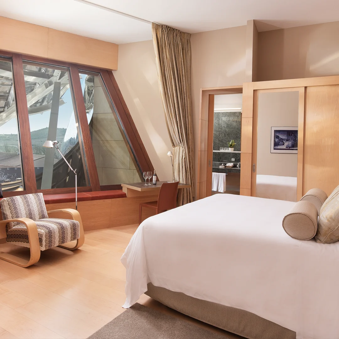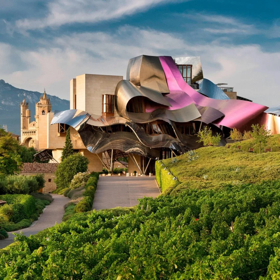 Frank Gehry tarafından tasarlanan Hotel Marques de Riscal, sıra dışı mimarisi ile dikkat çekiyor. İspanya’nın Rioja bölgesinde yer alan bu otel, modern tasarımı ve çevresindeki üzüm bağlarıyla konuklarına lüks ve şarap dolu bir deneyim sunuyor.