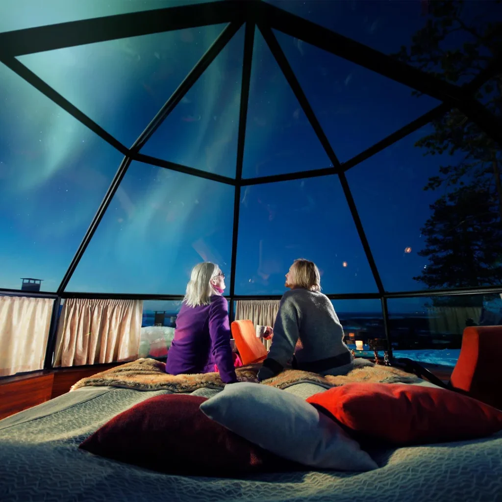 Finlandiya’nın Laponya bölgesinde yer alan bu resort, cam igloları ile tanınıyor. Bu iglolar sayesinde, konforlu bir şekilde otururken Kuzey Işıkları’nı izleyebilirsiniz. Ayrıca, bölgedeki karla kaplı ormanlarda kızakla gezintiye çıkabilirsiniz.