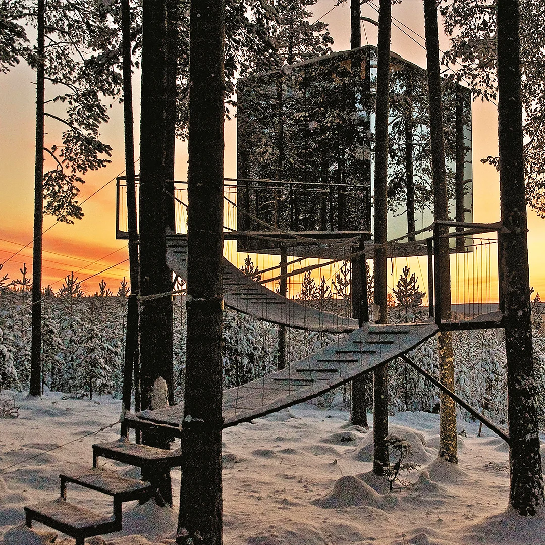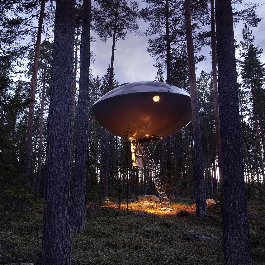 Ağaç evler konseptini bir adım öteye taşıyan Treehotel, farklı temalara sahip odalarıyla dikkat çekiyor. Uzay gemisi şeklindeki odalar, cam küpler ve kuş yuvası şeklindeki odalar, konuklarına doğayla iç içe, sıra dışı bir konaklama deneyimi sunuyor.