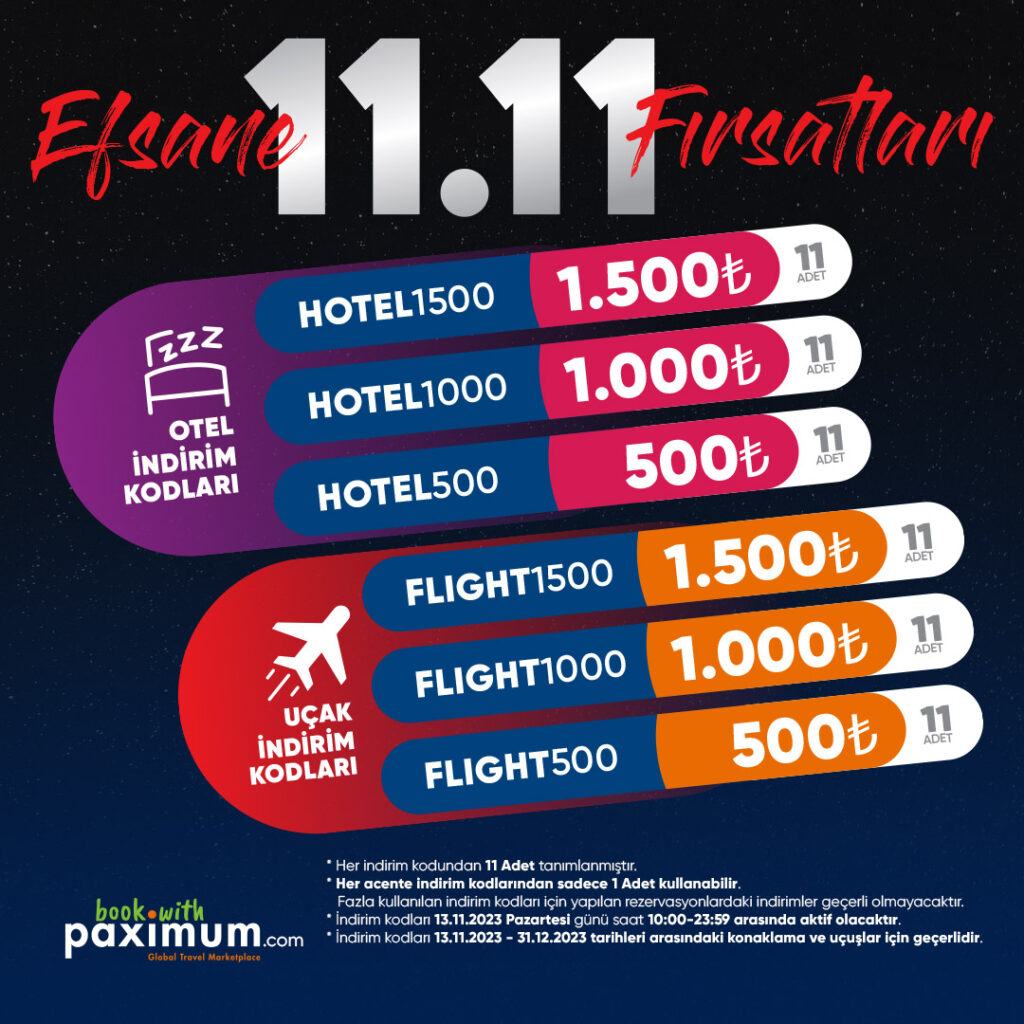 Paximum’un sunduğu bu eşsiz 11.11 indirimleriyle, hayalinizdeki tatil sadece bir adım ötede! Acele edin, kodları kapın ve bu fırsatları kaçırmayın.