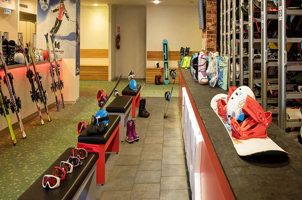 Pistlere ücretsiz servis imkanı sunan tesisin, kayak ve snowboard malzemeleri – bakımı – kiralama ve kursu mevcuttur.